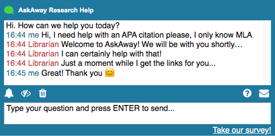 • A clear label that identifies the chat box (e.g., AskAway Research Help)
